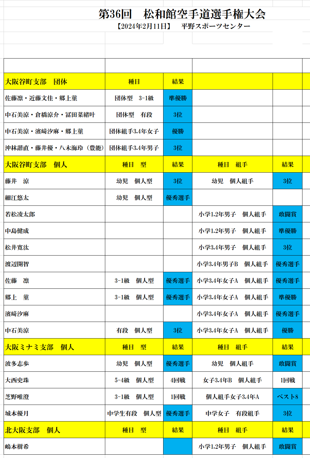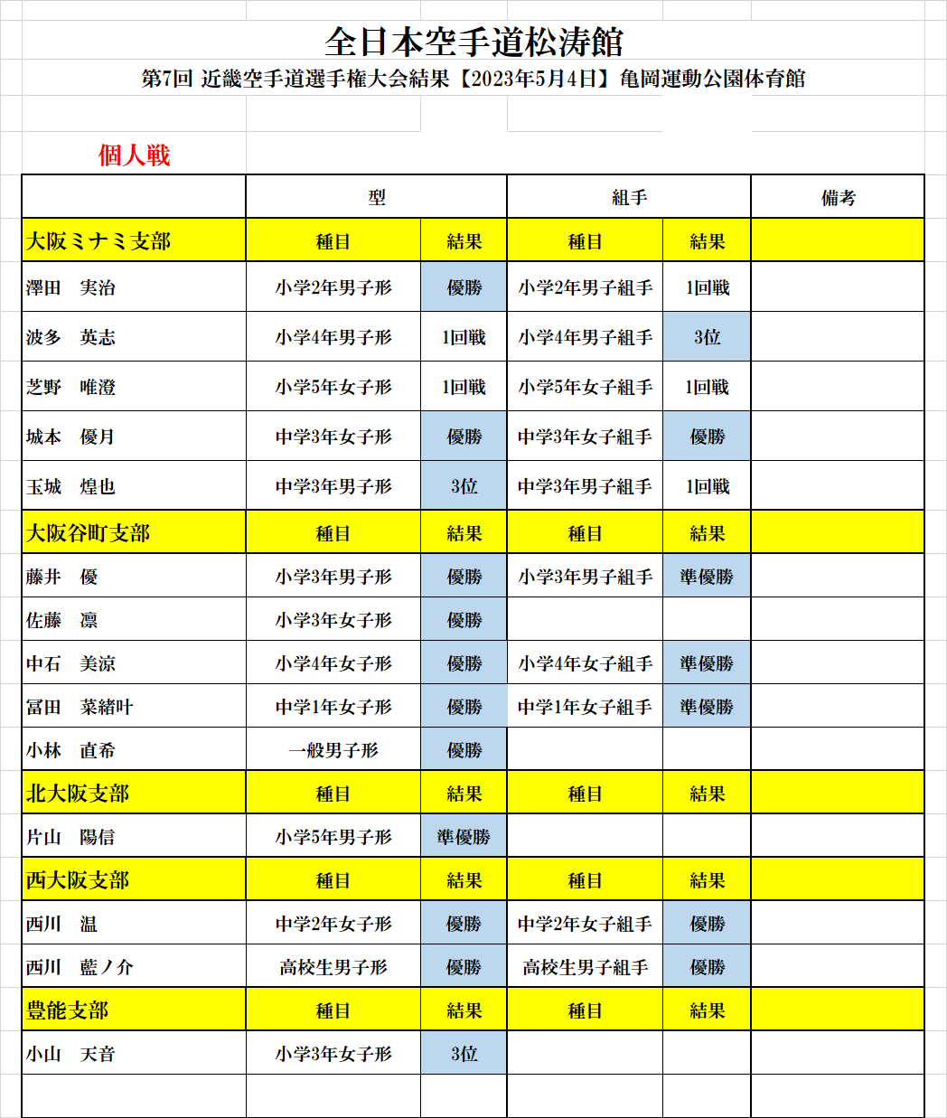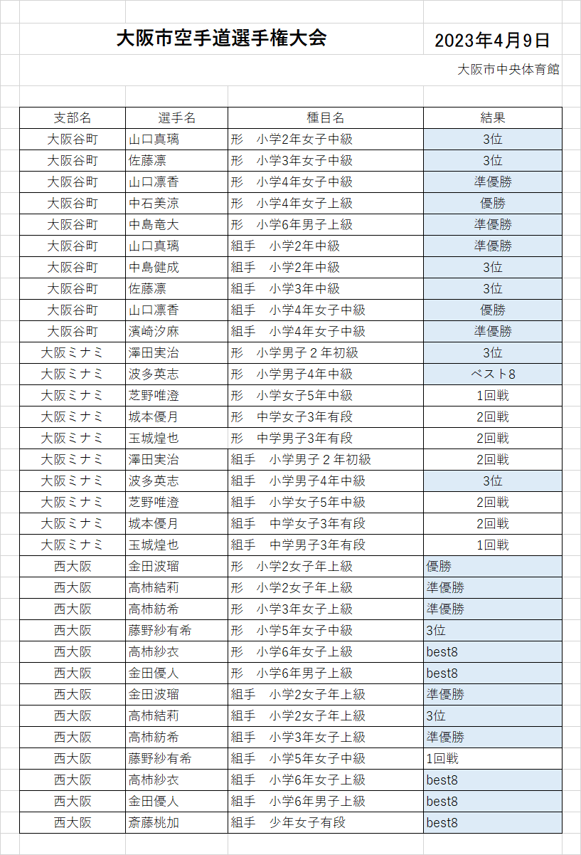 ![]() ![]() ![]() ![]() ![]() ![]() ![]() ![]() ![]() ![]() ![]() ![]() ![]() ![]() ![]() ![]() ![]() ![]() ![]() みんな良く頑張りました。 次は、大阪府連の大会 楽しみです。 |