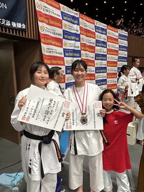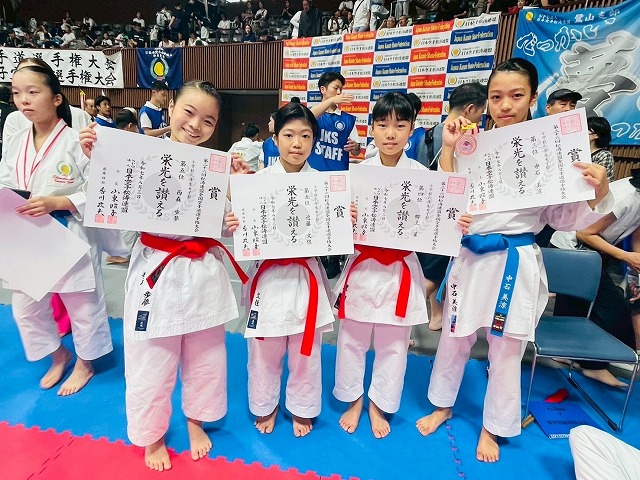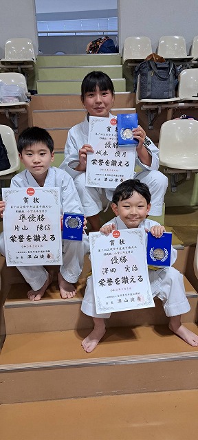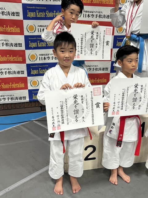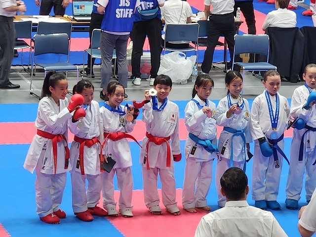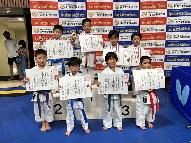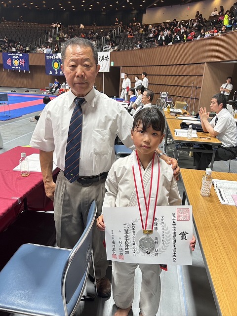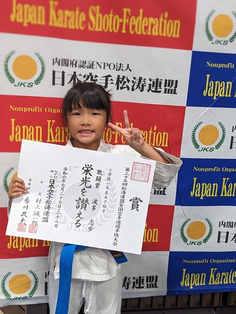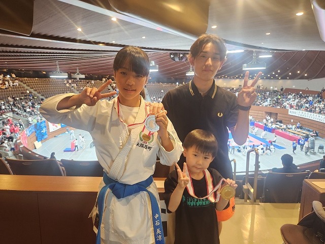 | 第25回全日本少年少女空手道選手権大会 2025年8月21日~24日 東京武道館 出場メンバー 宮川ひまり (大阪谷町支部)小学3年女子形 良田采穂(大阪谷町支部)小学3年女子組手 藤浪葉志朗(大阪谷町支部)小学3年男子組手 松山凛花(西大阪支部)小学4年女子組手 中石美涼(大阪谷町支部)小学6年女子組手 今回は、みんな良く頑張って5人出場 全国レベルとの戦い良い勉強になったと思います。 ![]() ![]() ![]() ![]() 松山凛花(西大阪支部) 小学4年女子組手 3位 ![]() 藤浪葉志朗(大阪谷町支部) 小学3年男子組手 5位 ![]() ![]() みんな良く頑張りました。 基本を一杯頑張って次回は、もっと上を目指すぞ |