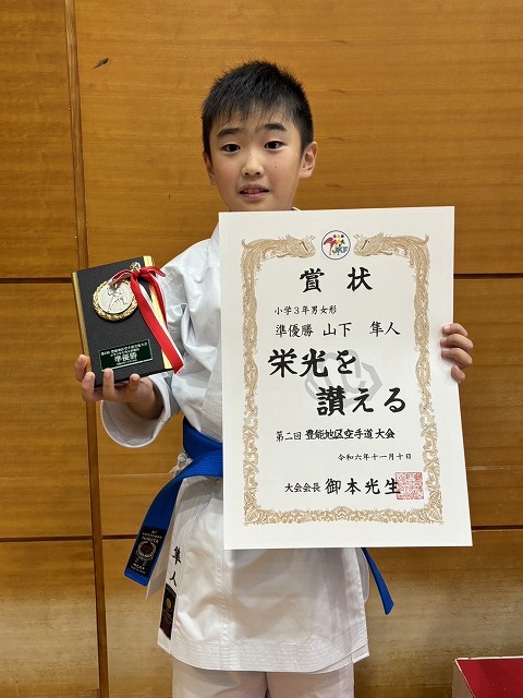 | 豊能地区交流大会 2024年11月10日 豊能支部 山下隼人 小学3年男女形の部 準優勝 平井桃子 一般女子組手の部 準優勝 ![]() ![]() ![]() ![]() ![]() みんな良く頑張りました 良い笑顔です |